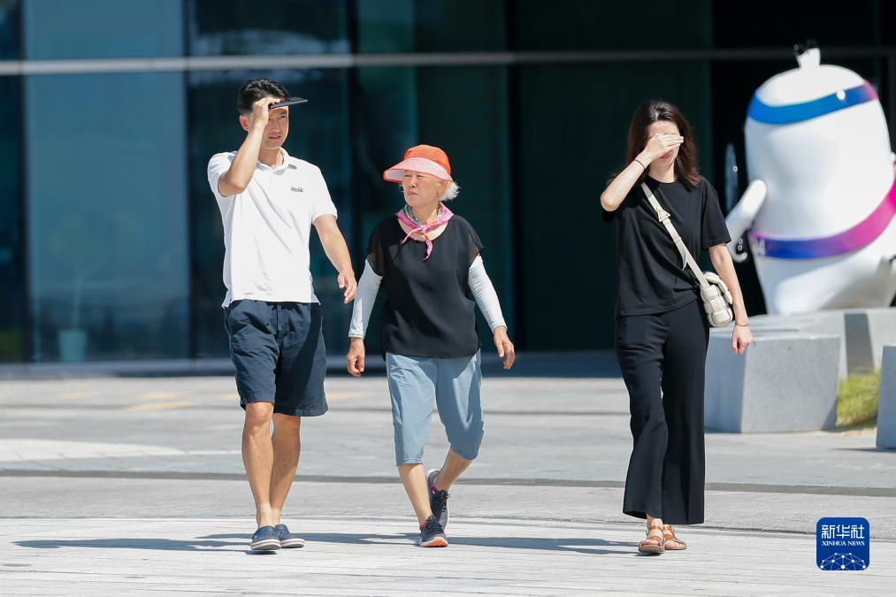 8月3日,市民頂著(zhù)烈日走在韓國釜山街頭。