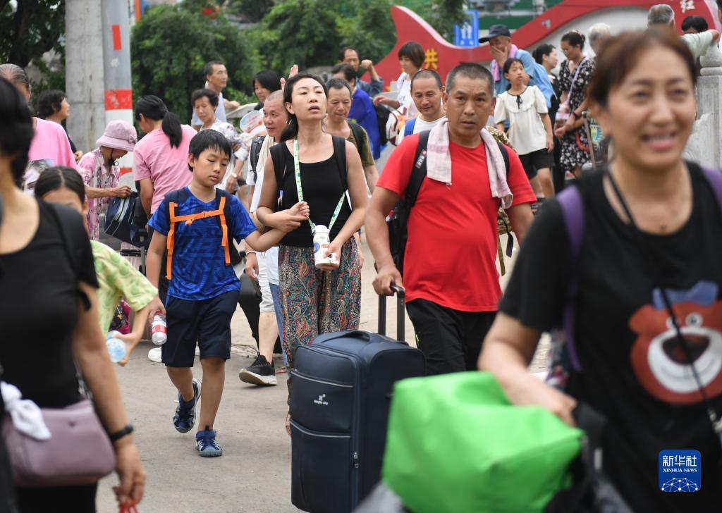 8月2日,Z180次受困列車(chē)的旅客離開(kāi)安家莊臨時(shí)安置點(diǎn)徒步前往轉運客車(chē)。