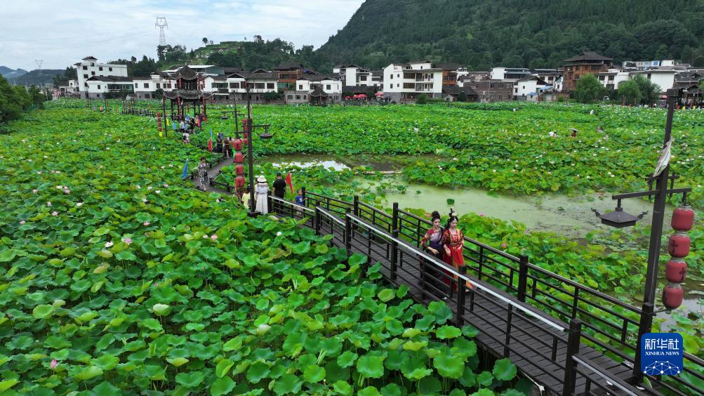 時(shí)下,貴州省岑鞏縣多地的荷花盛開(kāi),美麗的荷塘與村莊、稻田相映成趣,荷塘邊錯落有致的新民居、瓜果飄香的農家庭院,成為一道靚麗的風(fēng)景。