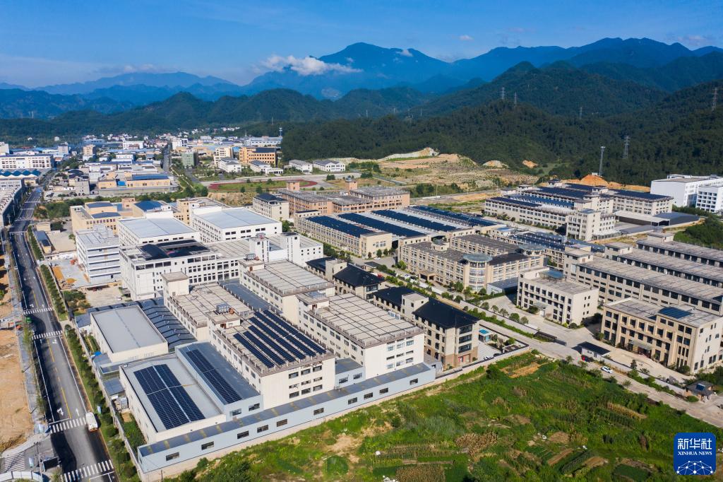8月3日,空中俯瞰位于浙江省杭州市臨安區龍崗鎮的中國堅果炒貨食品城(無(wú)人機照片)。