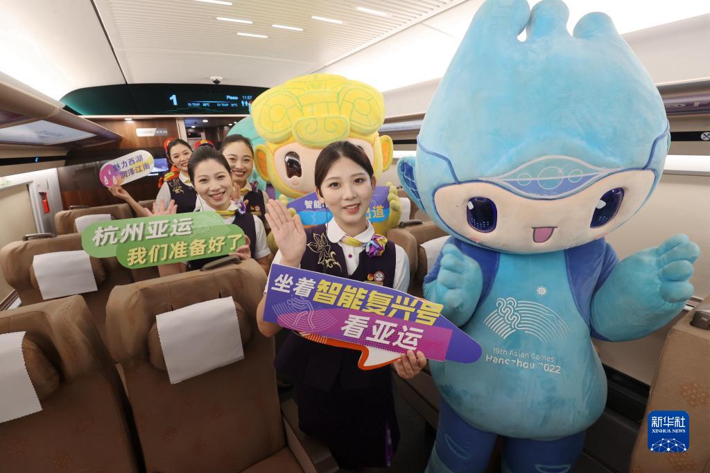 當日,由浙江交通集團購置、為杭州第19屆亞運會(huì )量身定制的復興號亞運智能動(dòng)車(chē)組搭載近百名乘客從杭州西站出發(fā),在合杭高鐵湖杭段開(kāi)啟首次試乘活動(dòng)。復興號亞運智能動(dòng)車(chē)組采用杭州亞運會(huì )主形象色“虹韻紫”涂裝,針對浙江多丘陵山地的地形特點(diǎn)采用定制化的技術(shù)創(chuàng )新方案,提升了乘客的乘坐舒適度,將在杭州亞運會(huì )賽事期間承擔重要的交通轉運功能。