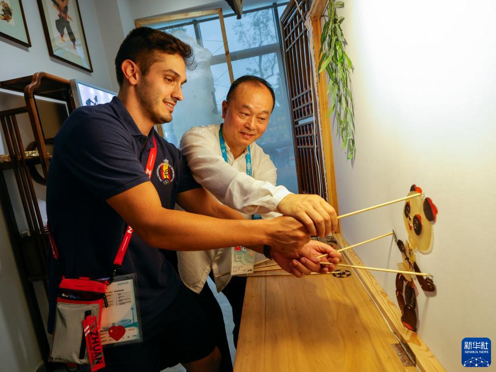 成都大運村里設置了包括皮影、剪紙、刺繡、草編等非遺項目在內的中國文化體驗項目,吸引眾多代表團成員前來(lái)參與。在這里,各代表團成員可以更加切近地感受、了解中國非遺文化的魅力。