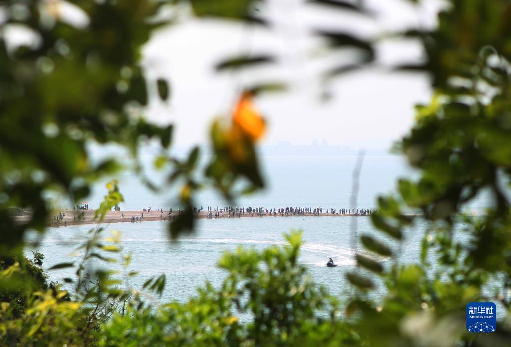 8月4日,游客在蓬萊長(cháng)島黃渤海交匯處游玩。