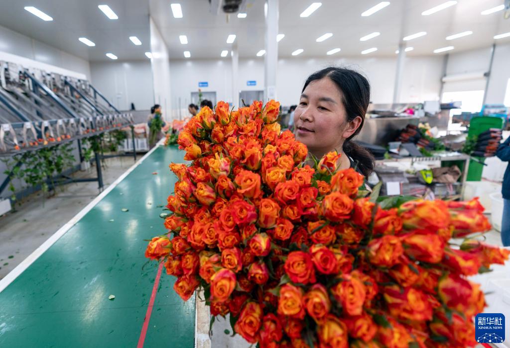 在云天化晉寧花卉產(chǎn)業(yè)現代化示范園內,一名花農在搬運分揀好的鮮花(7月12日攝)。新華社記者 陳欣波 攝