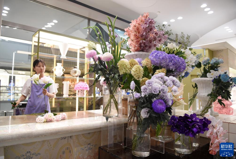 在北京市朝陽(yáng)區一家出售云南鮮花的花店,店員在打理鮮花(7月29日攝)。新華社記者 羅曉光 攝