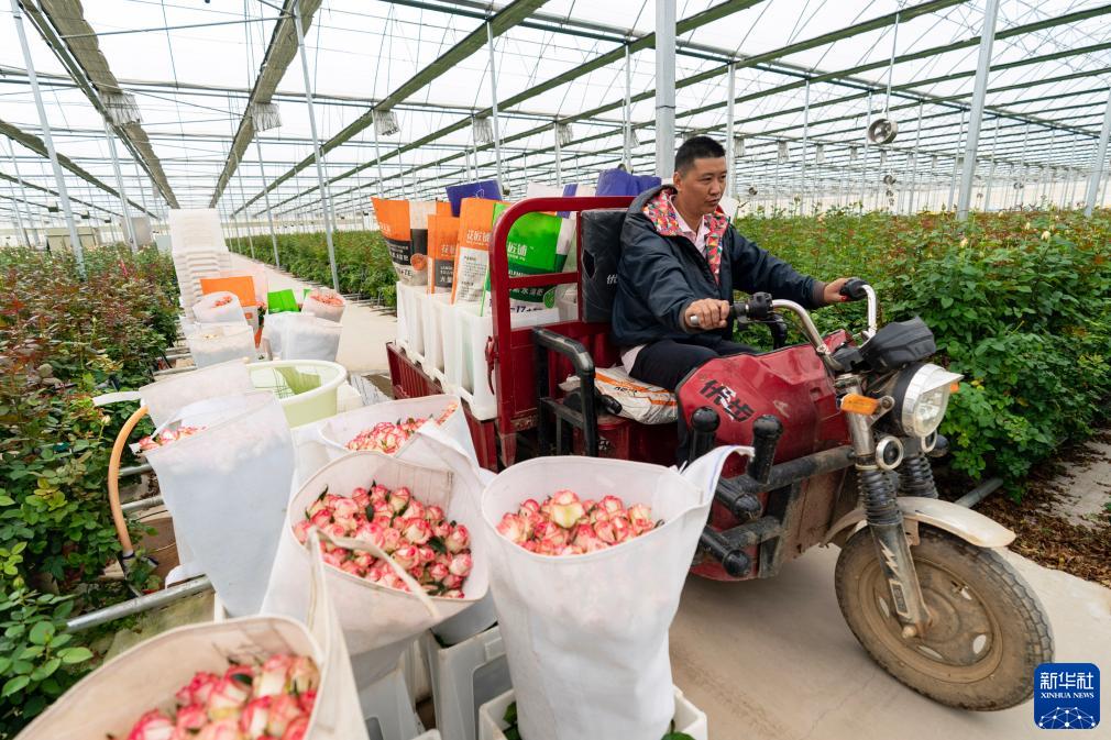 一名花農駕駛三輪摩托車(chē)在云天化晉寧花卉產(chǎn)業(yè)現代化示范園內運輸鮮花(7月12日攝)。新華社記者 陳欣波 攝