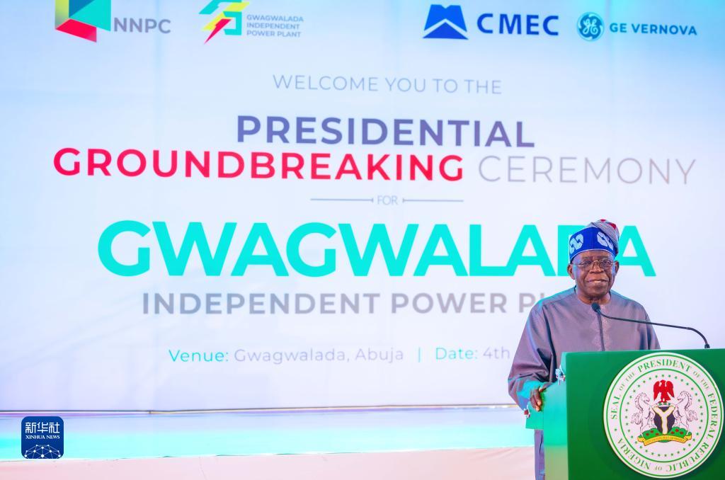 8月4日,在尼日利亞阿布賈,尼日利亞總統提努布在中企承建的尼日利亞天然氣發(fā)電站項目一期開(kāi)工儀式上致辭。
