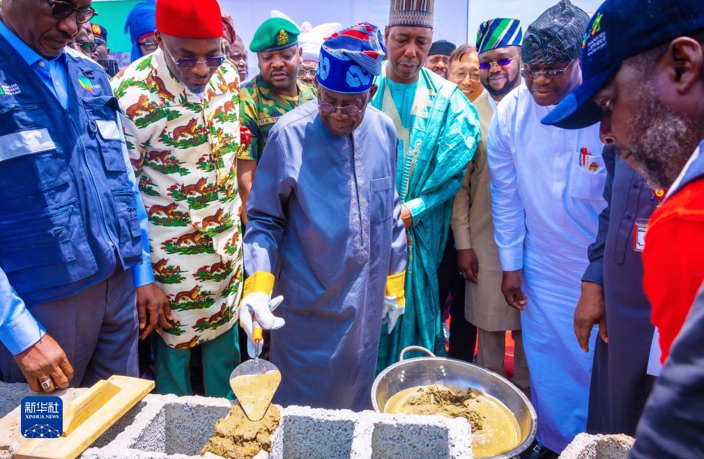 8月4日,尼日利亞總統提努布(前中)在阿布賈出席中企承建的尼日利亞天然氣發(fā)電站項目一期開(kāi)工儀式。