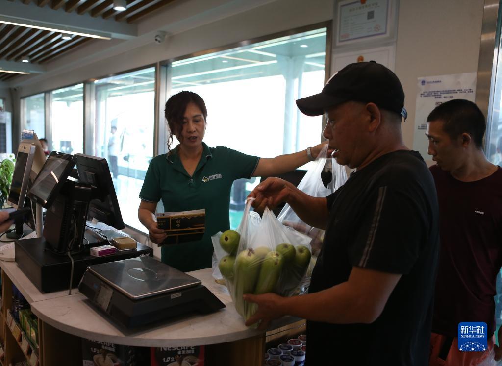 8月4日,船員在綜合服務(wù)區的超市選購商品。