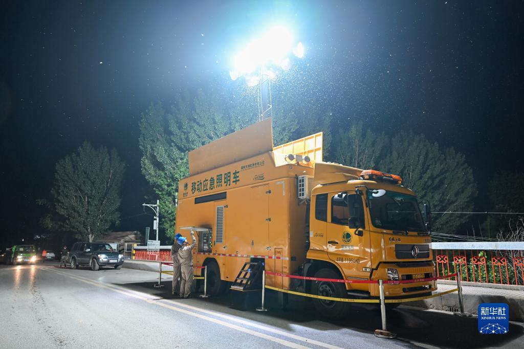 8月4日,國網(wǎng)天津電力移動(dòng)應急照明車(chē)在天津市靜海區臺頭鎮革命橋上為岸堤作業(yè)人員及巡堤人員提供移動(dòng)應急照明保障。