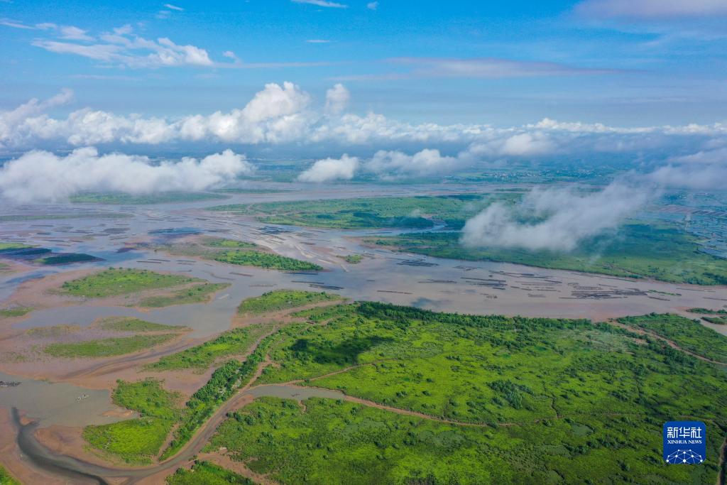 這是7月23日拍攝的茅尾海紅樹(shù)林自然保護區(無(wú)人機照片)。