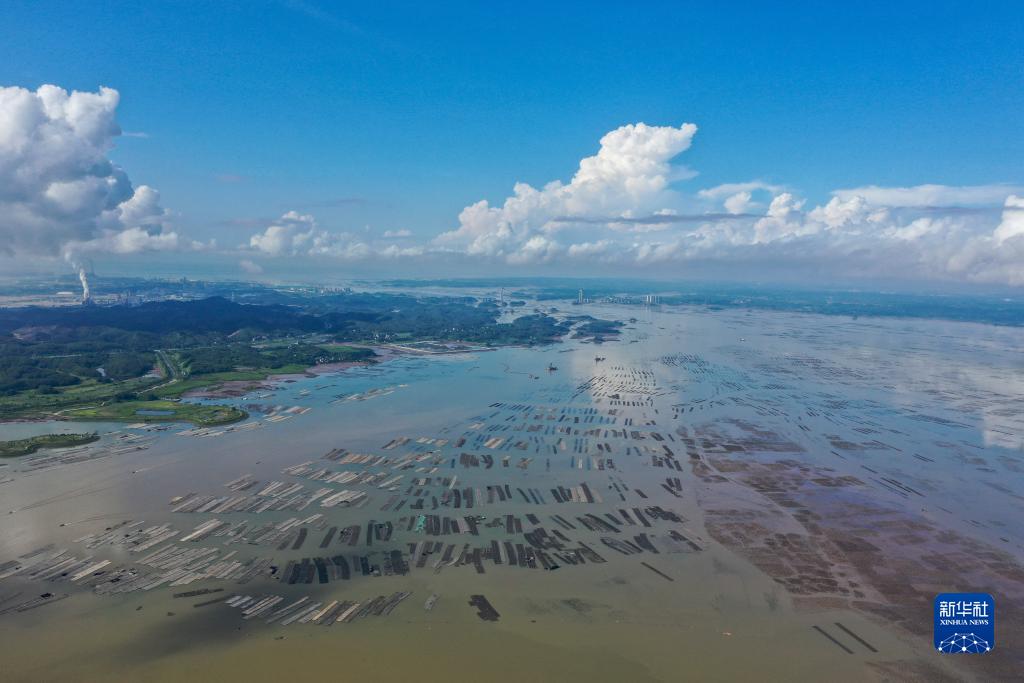 這是7月23日拍攝的茅尾海附近的水產(chǎn)養殖區(無(wú)人機照片)。