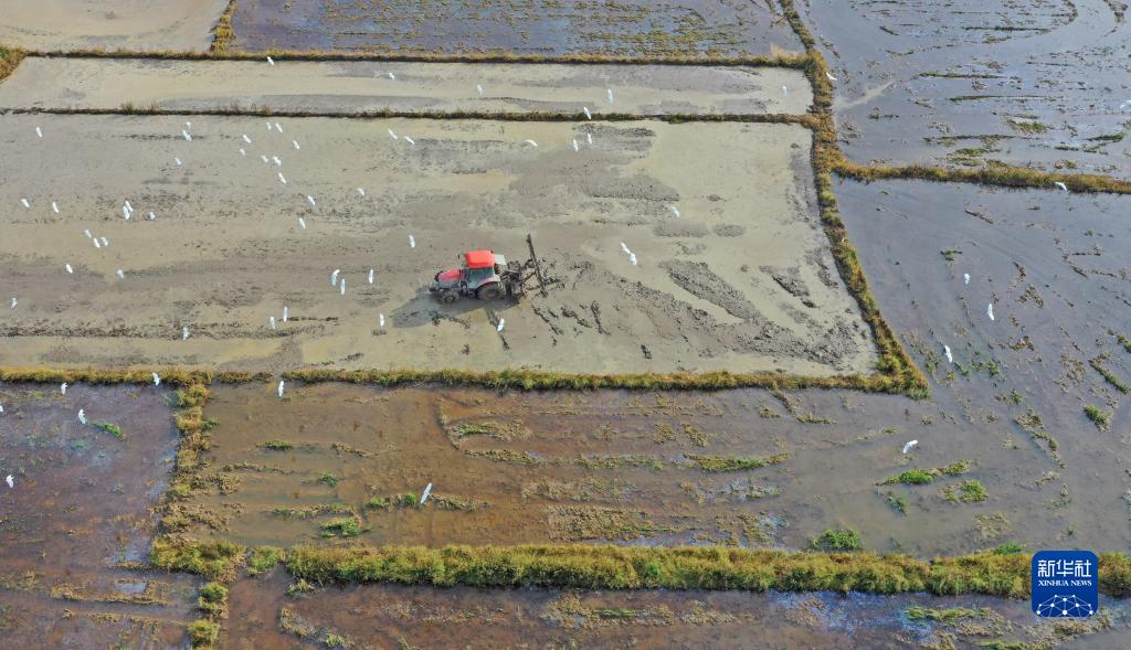 8月5日,浙江省臺州市仙居縣白塔鎮,農戶(hù)在翻犁農田,準備播種晚稻(無(wú)人機照片)。