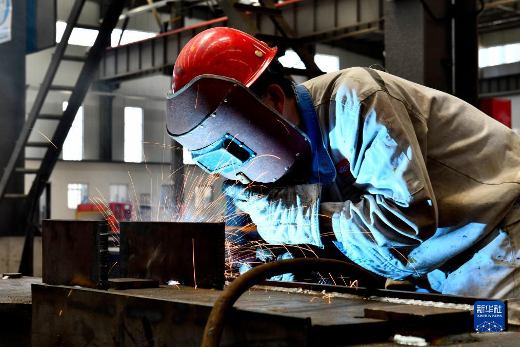 8月5日,在位于日照市東港區的山東力山特智能科技有限公司,工作人員在焊接智能行車(chē)設備。