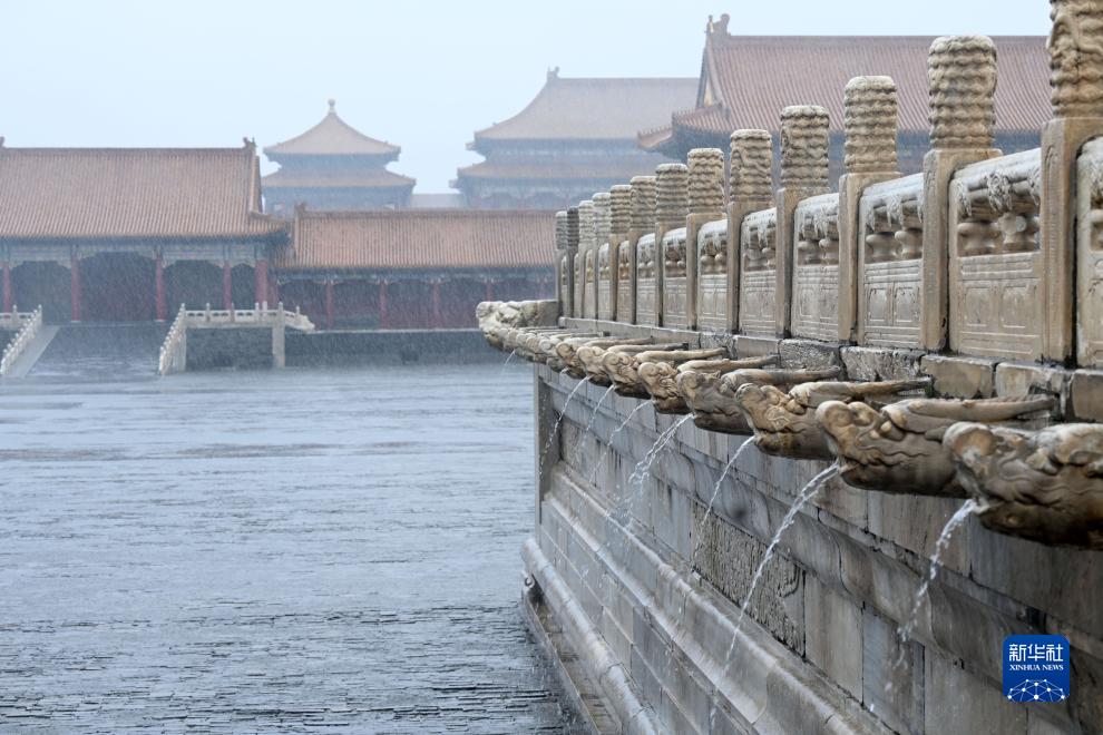 連日,北京迎來(lái)強降雨天氣,故宮再現“九龍吐水”,依靠精妙的排水系統,宏大的故宮建筑群,在暴雨中安然無(wú)恙。