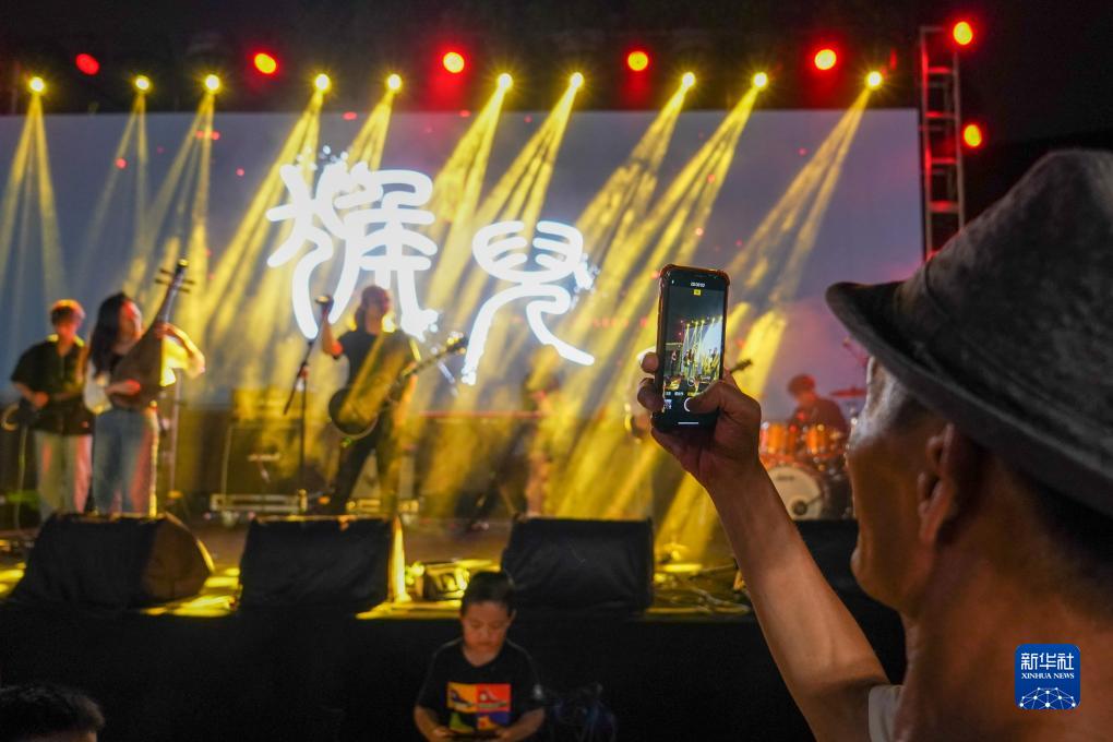 觀(guān)眾在蘇州市樹(shù)山村“村潮澎湃”音樂(lè )節活動(dòng)現場(chǎng)觀(guān)看表演(7月14日攝)。