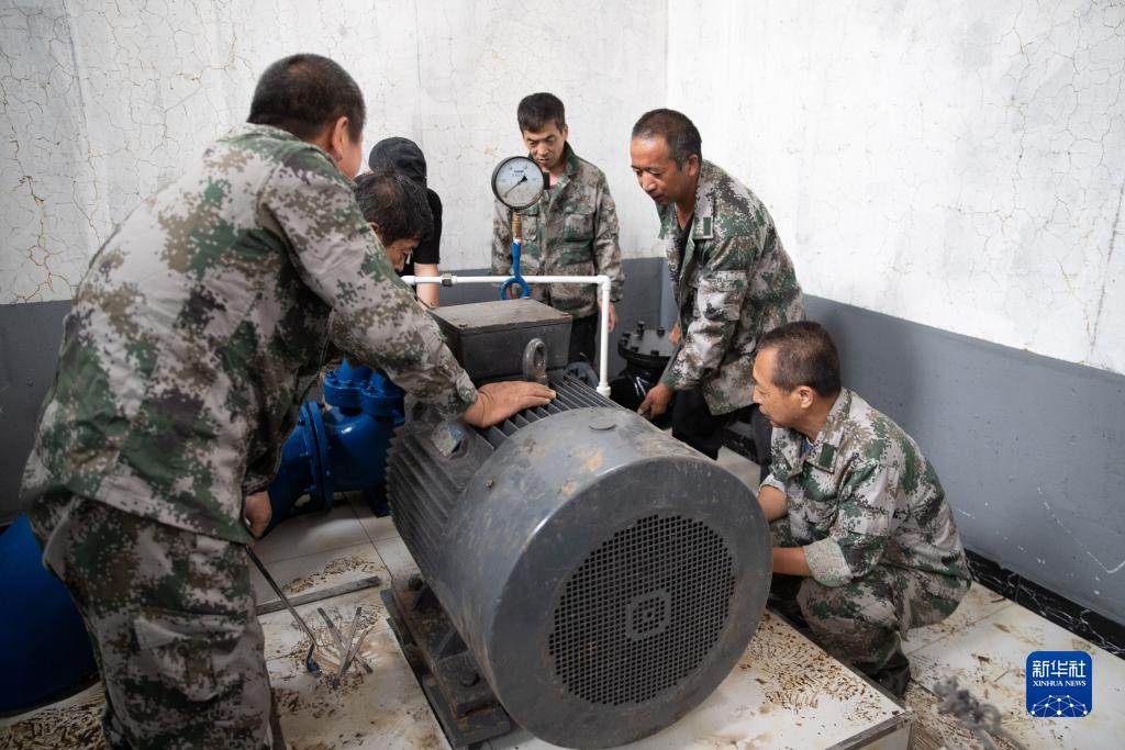 8月6日,在大海林林業(yè)局有限公司自來(lái)水供應站,工作人員在修理供水泵。