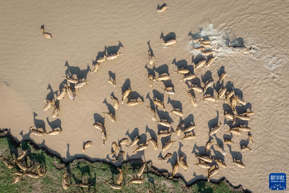時(shí)至盛夏,位于湖北天鵝洲長(cháng)江故道邊的湖北石首麋鹿國家級自然保護區迎來(lái)了一場(chǎng)夏日的狂歡。