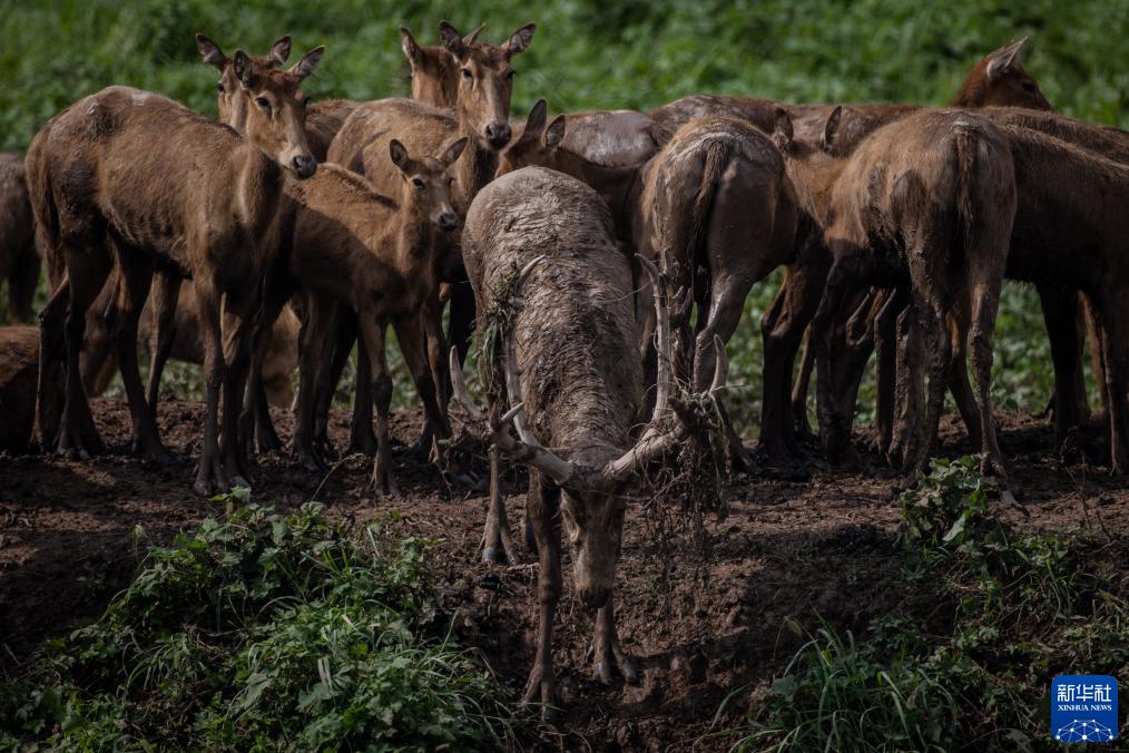 每年6-8月是保護區內麋鹿的發(fā)情期。每到這時(shí),雄性麋鹿會(huì )用鹿角挑掛青草、在身上涂滿(mǎn)泥漿,大聲吼叫,以此獲得雌鹿的青睞。為了爭奪交配權,處于發(fā)情期的雄鹿之間常常會(huì )爆發(fā)激烈“爭斗”,并各自圈出多個(gè)繁殖群體,每個(gè)群體由一頭鹿王和多頭雌鹿及幼鹿組成,數量不等。