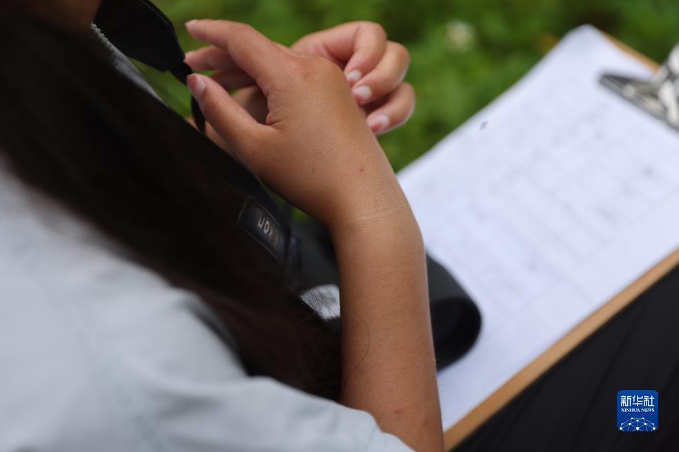 8月5日,劉彥辰一邊觀(guān)察白頭葉猴,一邊抓撓手上被蟲(chóng)咬的小包。