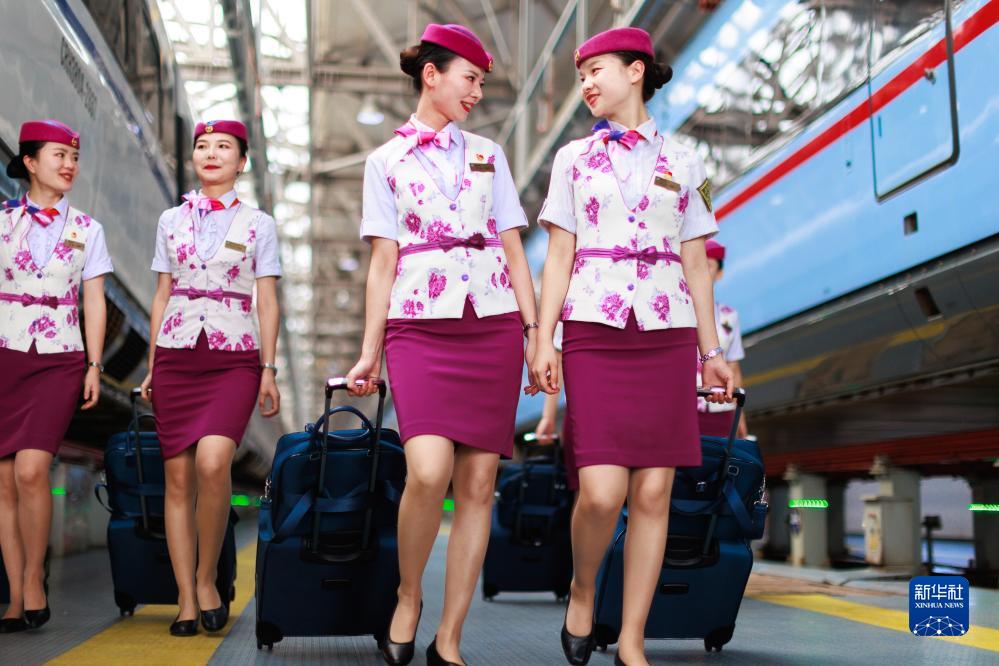 8月7日,擔任首發(fā)列車(chē)值乘工作的乘務(wù)員在貴陽(yáng)亮相。