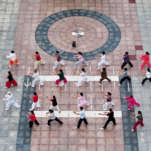 8月8日,山東省臨沂市臨沭縣文化廣場(chǎng)太極團隊在文化廣場(chǎng)展示太極拳。