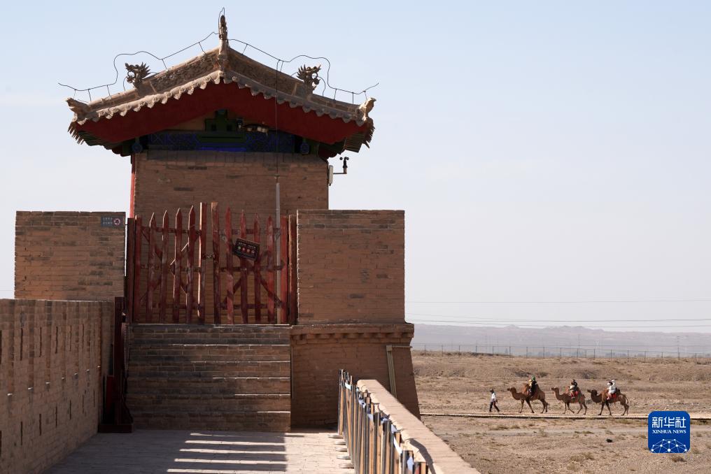 8月7日,游客在嘉峪關(guān)關(guān)城外騎駱駝。