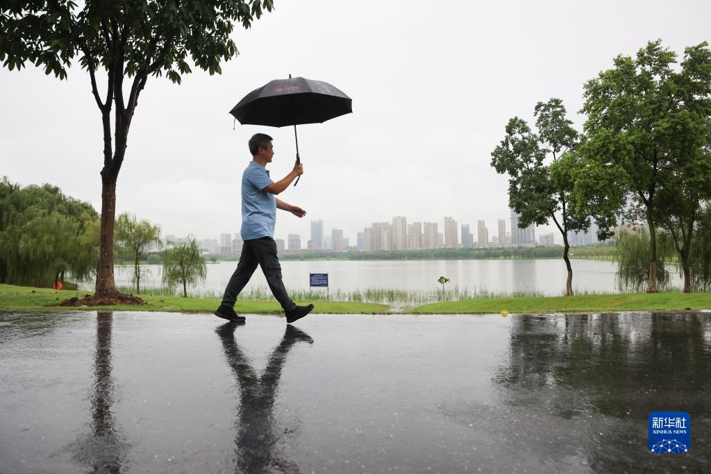 7月21日,彭承志行走在安徽合肥蜀西湖邊。