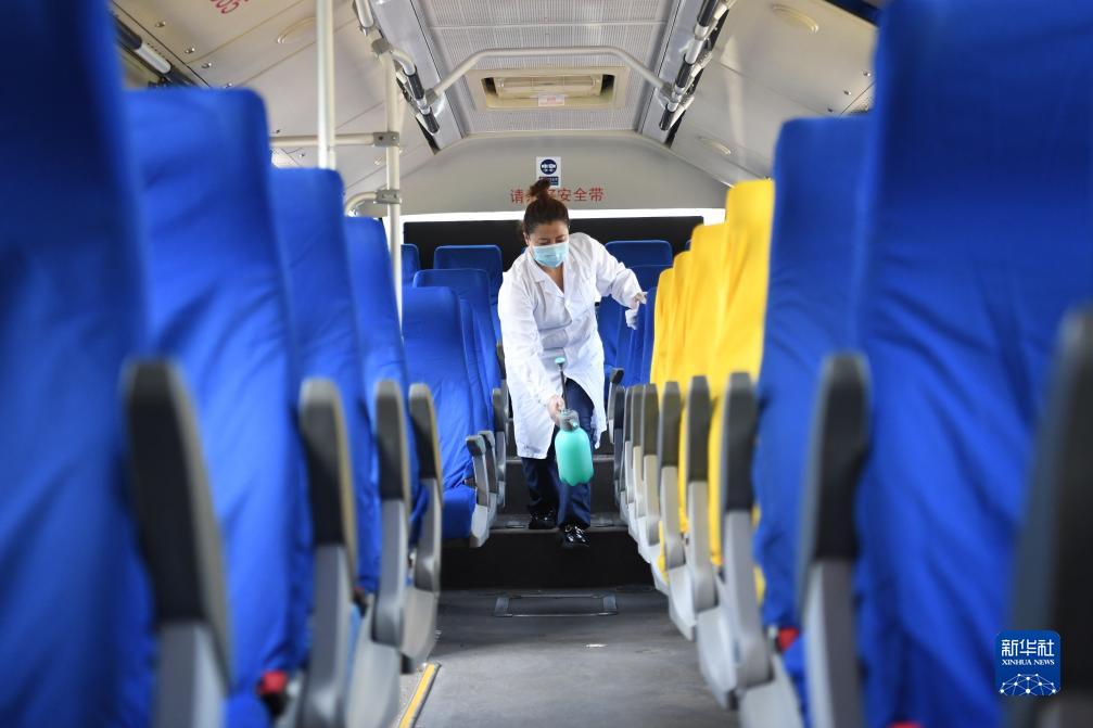 8月9日,河北省涿州市838路公交總站工作人員對車(chē)輛進(jìn)行消毒。