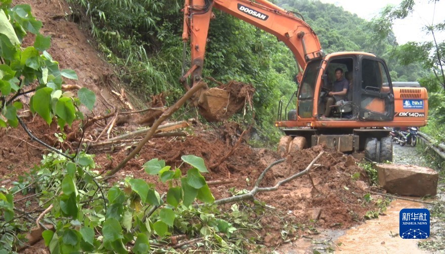 8月7日,在越南高平省,一輛挖掘機搶修道路。