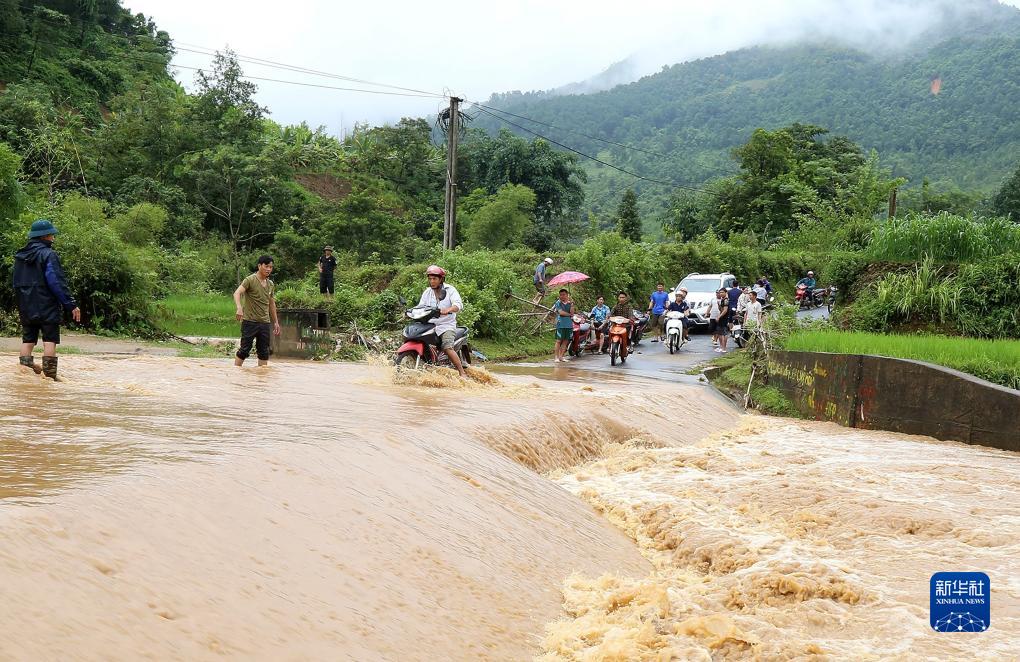 8月8日,在越南老街省,洪水致使河流水位上漲。