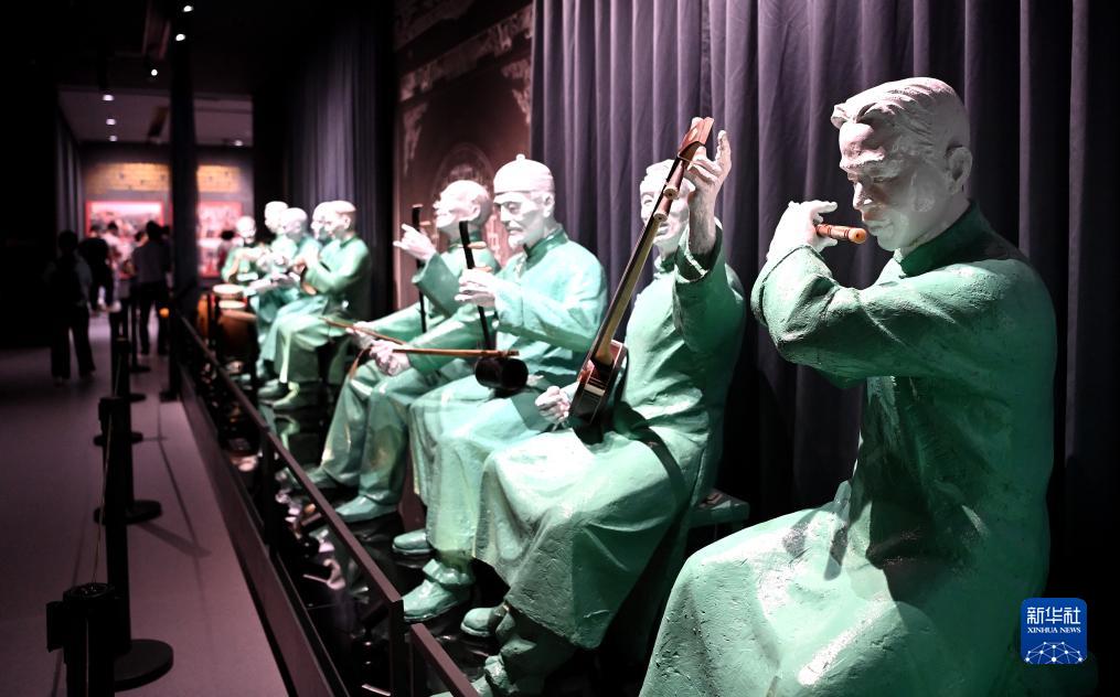 中國秦腔藝術(shù)博物館里展示的戲曲藝人雕塑(8月8日攝)。