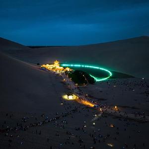 近期,甘肅省敦煌市鳴沙山月牙泉景區迎來(lái)暑期游客高峰。為豐富游客體驗,景區在夜幕降臨后舉行“點(diǎn)亮敦煌——鳴沙山月牙泉沙漠萬(wàn)人演唱會(huì )”活動(dòng)。游客們伴著(zhù)音樂(lè ),揮舞點(diǎn)亮的手機唱歌互動(dòng),遙望夜幕下的月牙泉,感受別樣的景致。