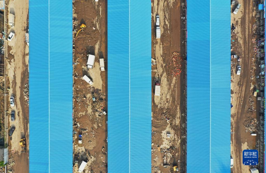 這是洪水退去后的涿州新發(fā)地大石橋農副產(chǎn)品批發(fā)市場(chǎng)(8月9日攝,無(wú)人機照片)。