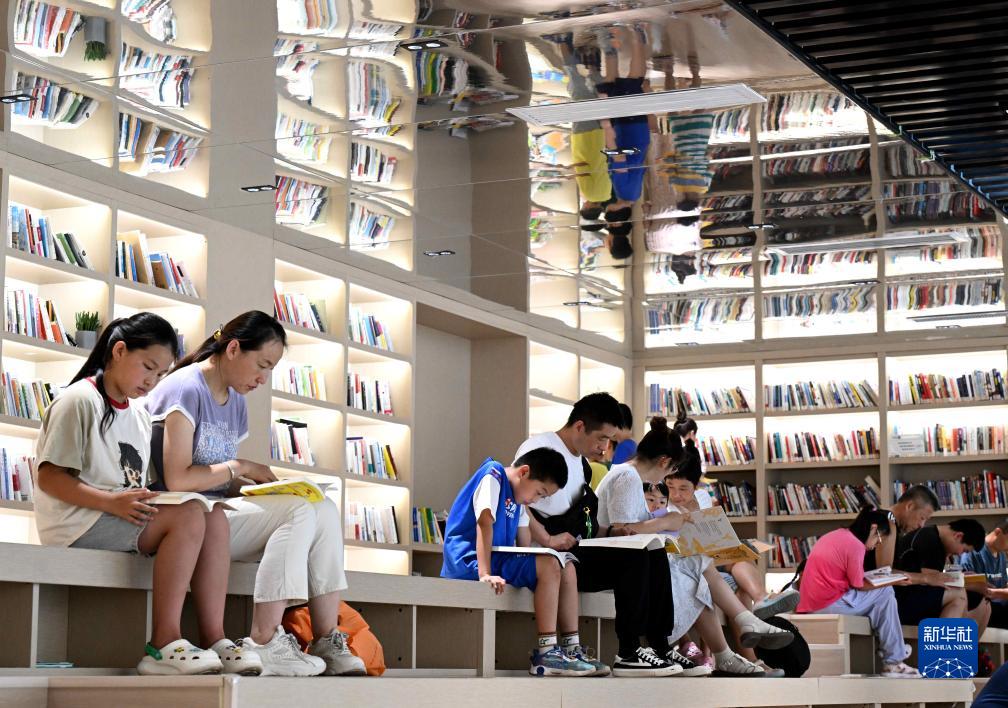 8月9日,市民在河北省石家莊市鹿泉區龍泉湖公園內一處公園書(shū)房閱讀。