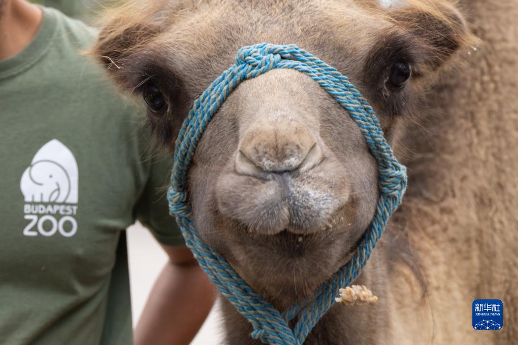 8月9日,在匈牙利布達佩斯動(dòng)物園,駱駝品嘗特制蛋糕。