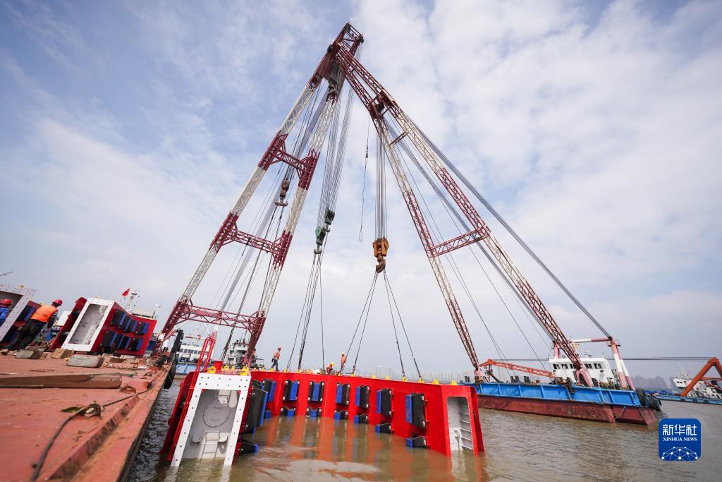 8月9日,中國鐵路上海局集團有限公司工作人員在南京上元門(mén)碼頭對南京長(cháng)江大橋橋墩防撞設施進(jìn)行組裝。