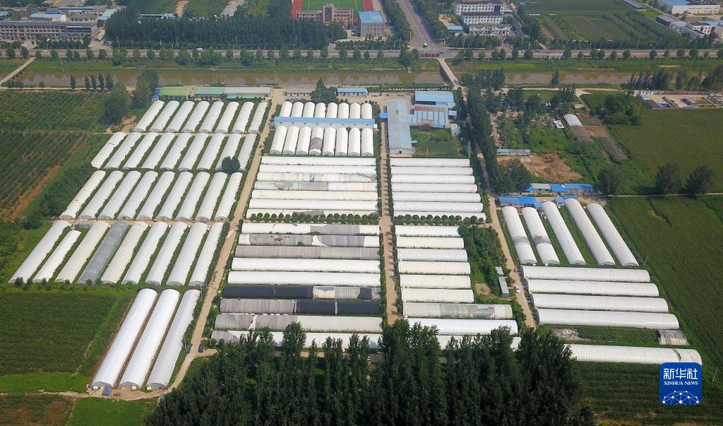 這是位于山東省菏澤市定陶區天中街道南城社區的一處種植黑皮雞樅菌的食用菌種植基地(8月10日攝,無(wú)人機照片)。