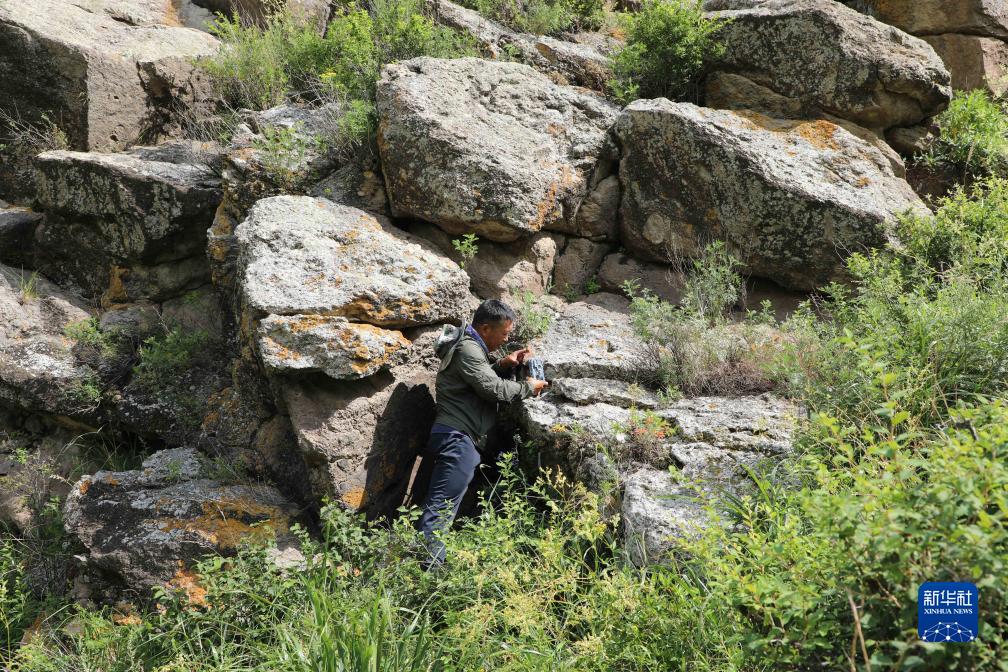 8月10日,白巴嘎那在內蒙古扎魯特旗罕山國家級自然保護區內架設紅外相機。