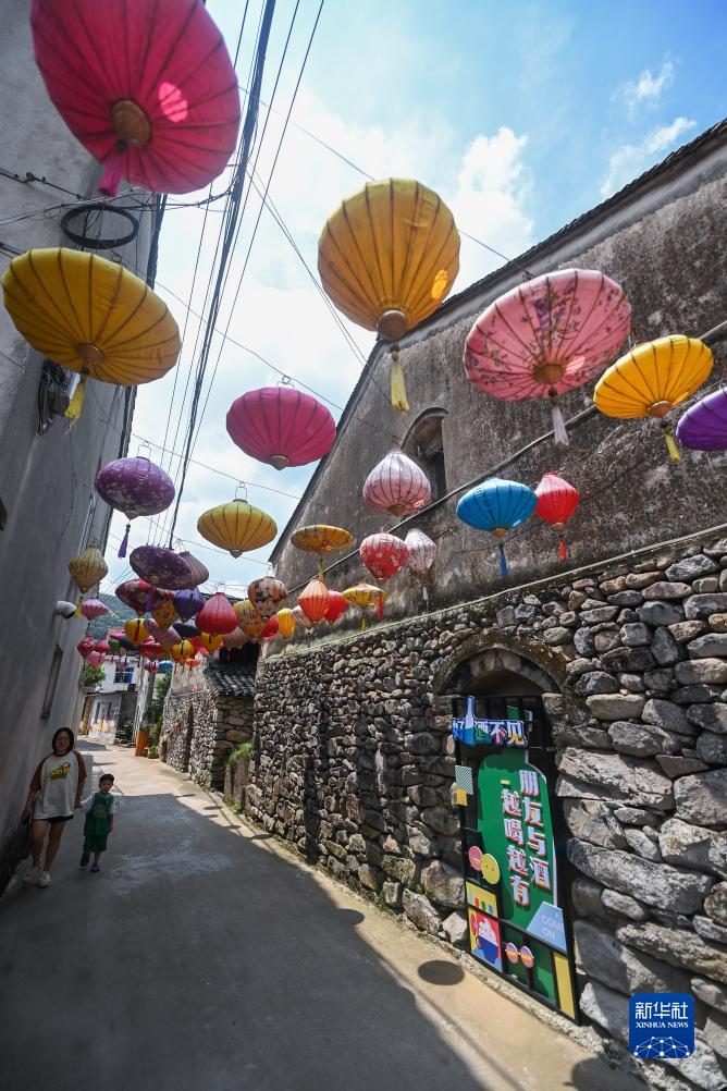 8月11日拍攝的由高校藝術(shù)院校師生及當地村民共同打造提升的葛家村特色街巷。