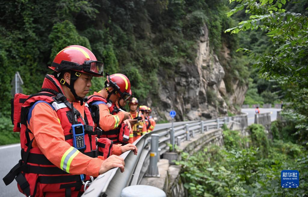 8月12日,救援人員在沿河搜救。