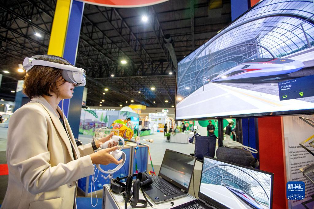 8月11日,在泰國曼谷舉辦的泰國國家科學(xué)技術(shù)展上,一名女子在中國館體驗虛擬交互系統。