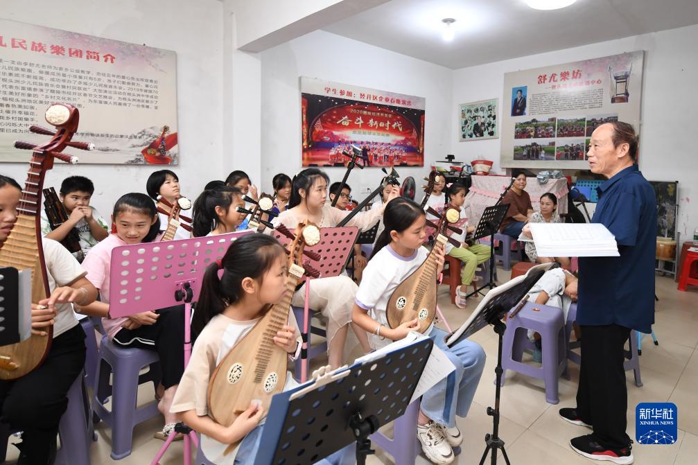 8月12日,李舒尤(右一)在枧頭洲村舒尤樂(lè )坊給學(xué)生們上課。