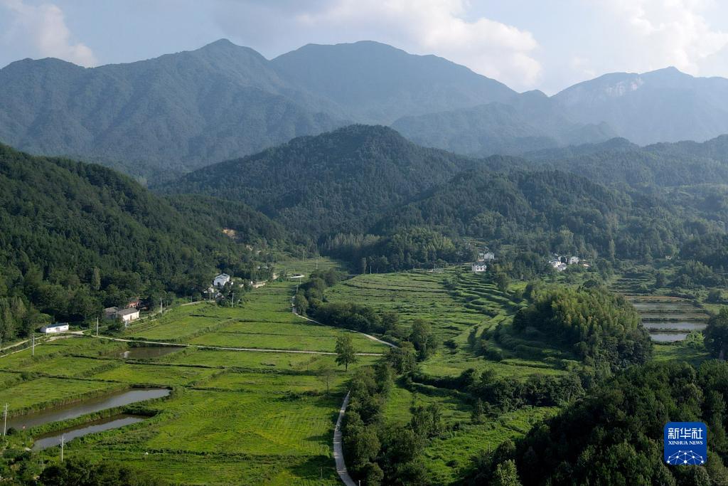 這是8月12日拍攝的安徽天馬國家級自然保護區天堂寨管理站一角(無(wú)人機照片)。