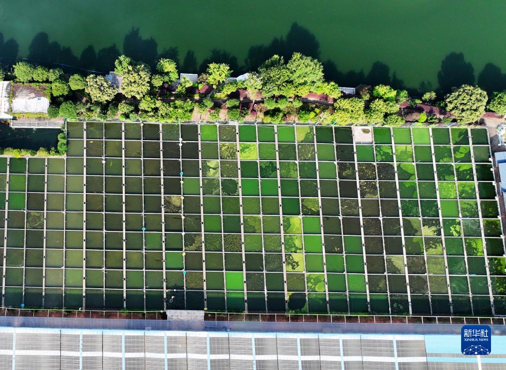 這是無(wú)人機航拍的福州市閩侯縣南通鎮古城村龍頭企業(yè)春園鯉生態(tài)養殖場(chǎng)(8月9日攝,無(wú)人機照片)。