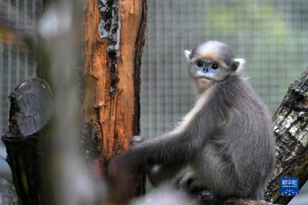 這是8月14日在梵凈山野生動(dòng)物救護中心拍攝的黔金絲猴。