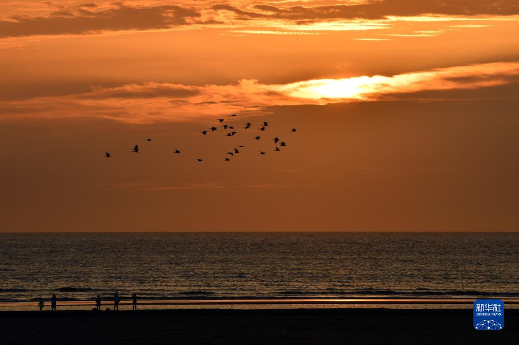 江蘇省啟東市黃金海灘景區日出景色(2023年7月25日攝)。