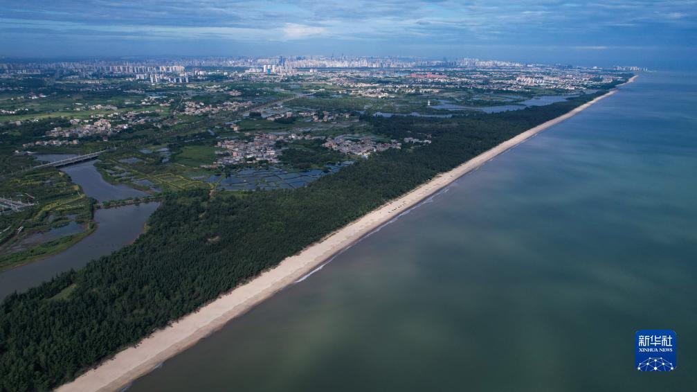 航拍??谑薪瓥|新區的海岸線(xiàn)(無(wú)人機照片,8月6日攝)。