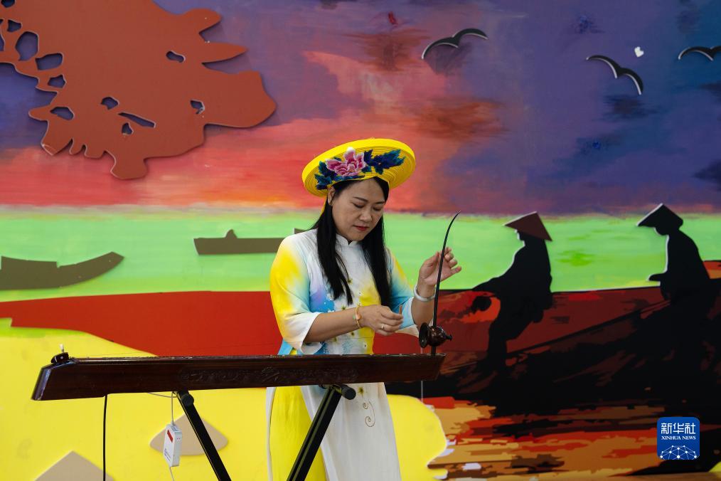 8月13日,在東興京族博物館,獨弦琴傳承人蘇海珍為游客演奏。