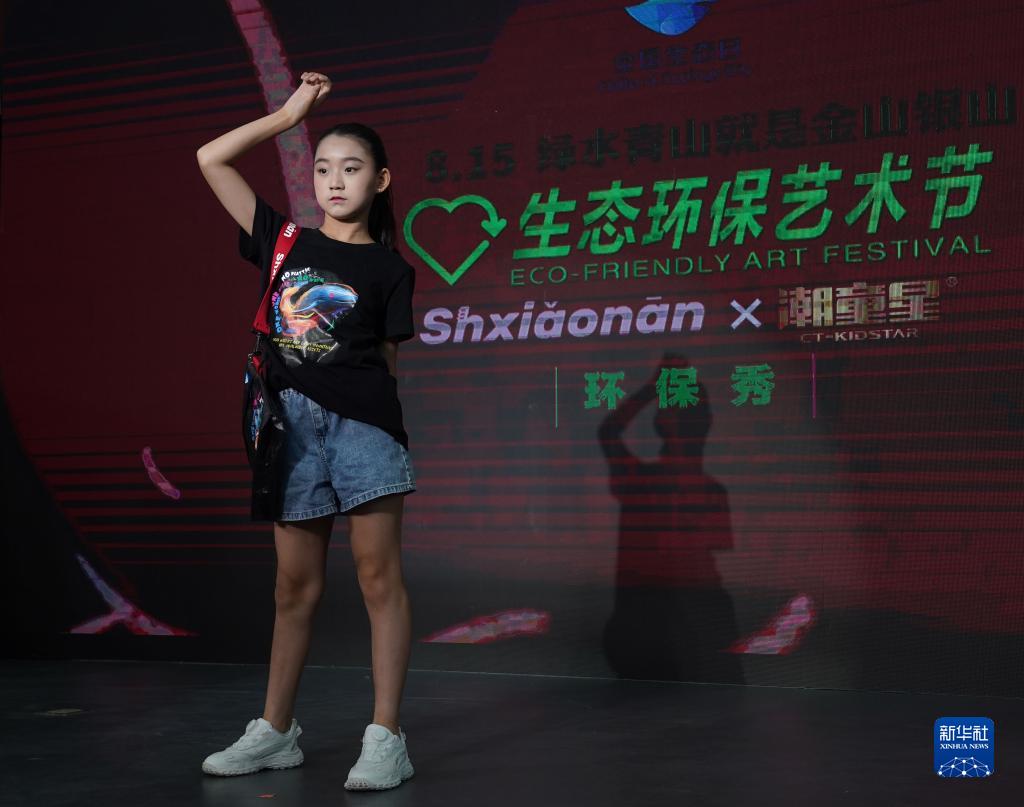 8月15日,小模特在藝術(shù)節開(kāi)幕式上展示以海洋生物多樣性保護為主題的服裝。